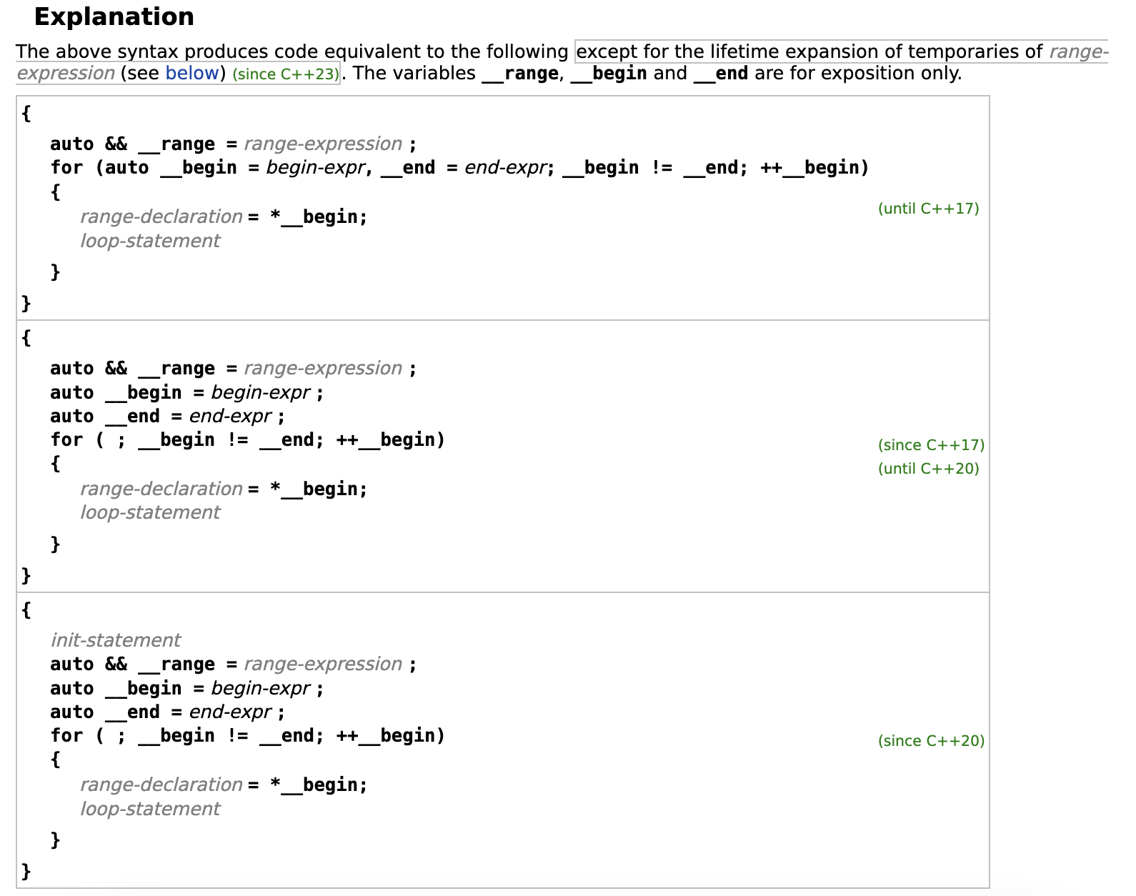 C++17 전까지만 해도 위에서 본 iterator 사용 패턴과 완벽하게 동일한 것을 알 수 있고, 그 이후에도 조금씩의 형태 변화는 있었지만 거의 동일하단 것을 알 수 있습니다.