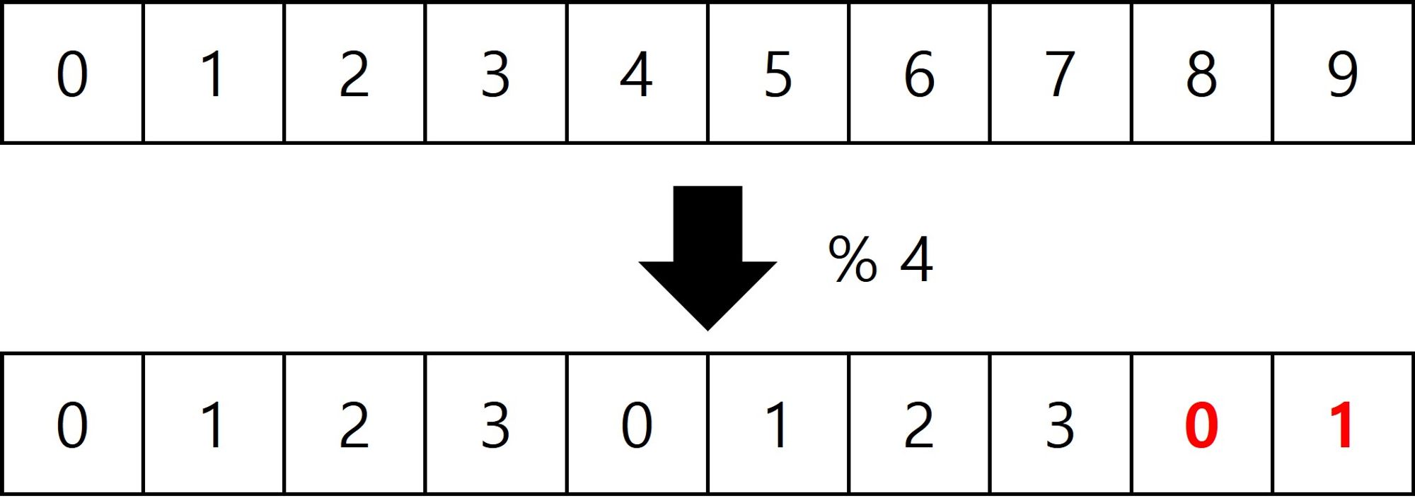 여기서 각각에 %4 연산을 취한 결과를 생각해보자.