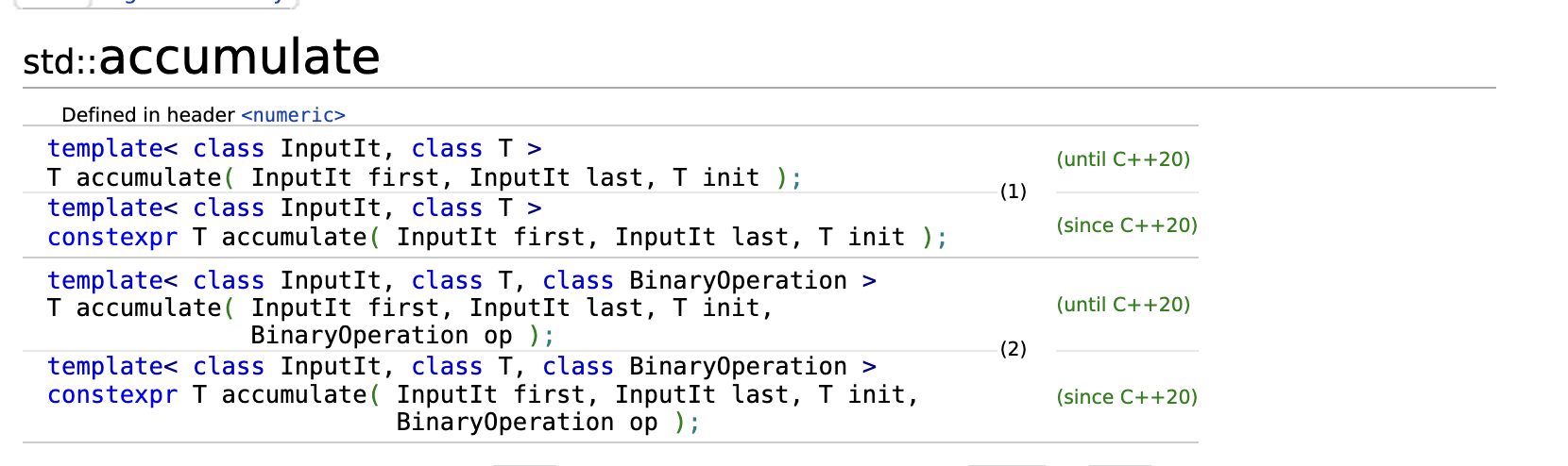 실제로 cppreference std::accumulate를 보면, C++20 전까지는 std::accumulate