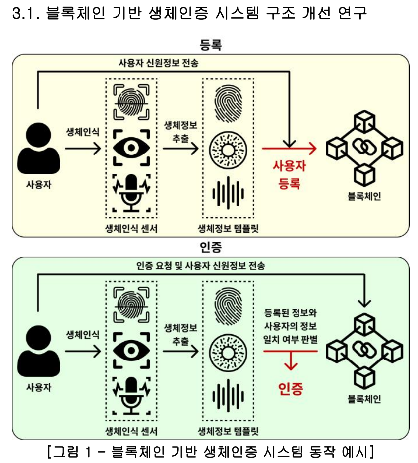 또한 생체인증에 블록체인 기술을 도입하는 방법을 다루고 있다는 것 역시 알 수 있다.