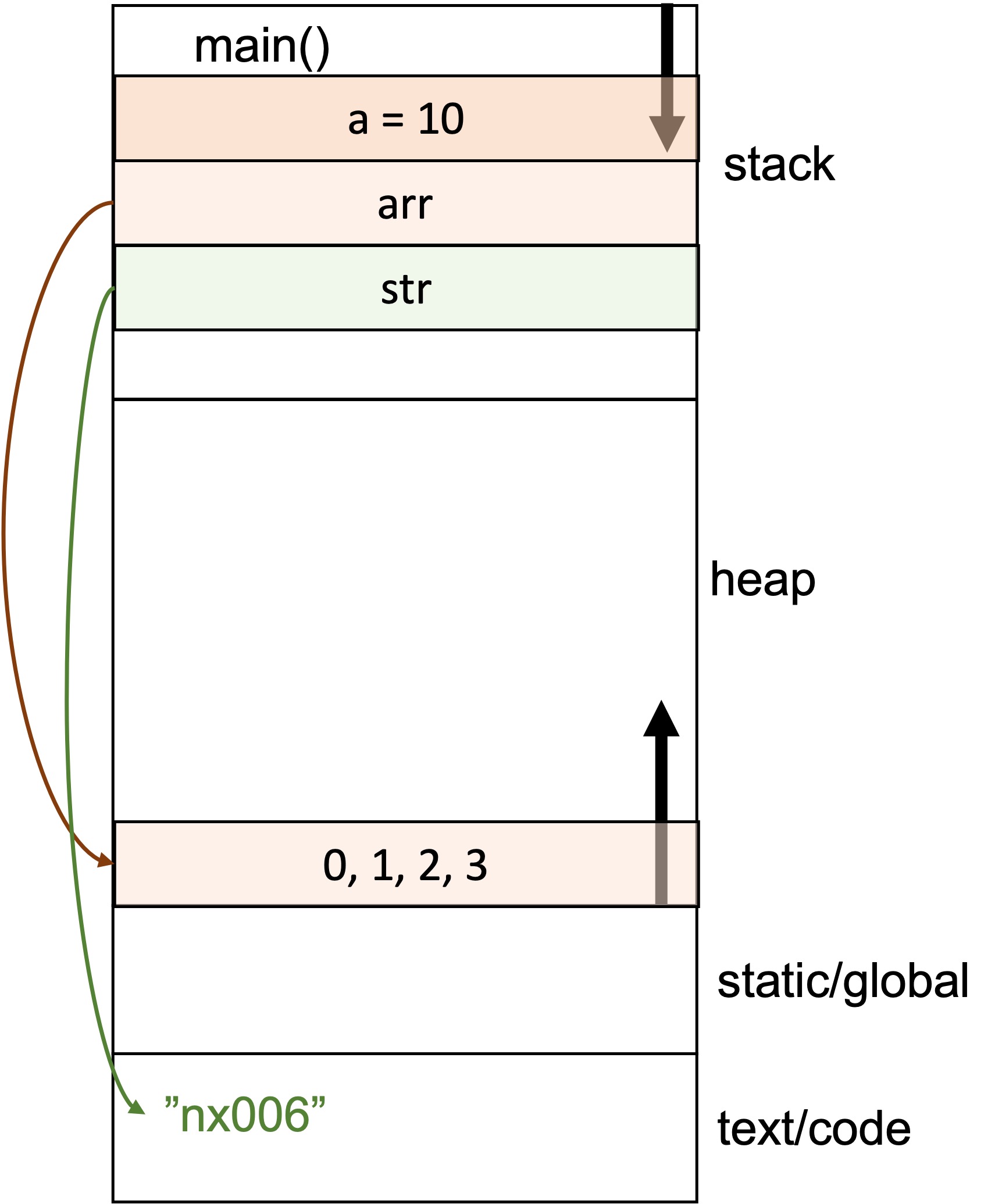 예시로 위 프로그램을 메모리 구조로 나타낸다면 아마 아래 그림처럼 될 것이다.