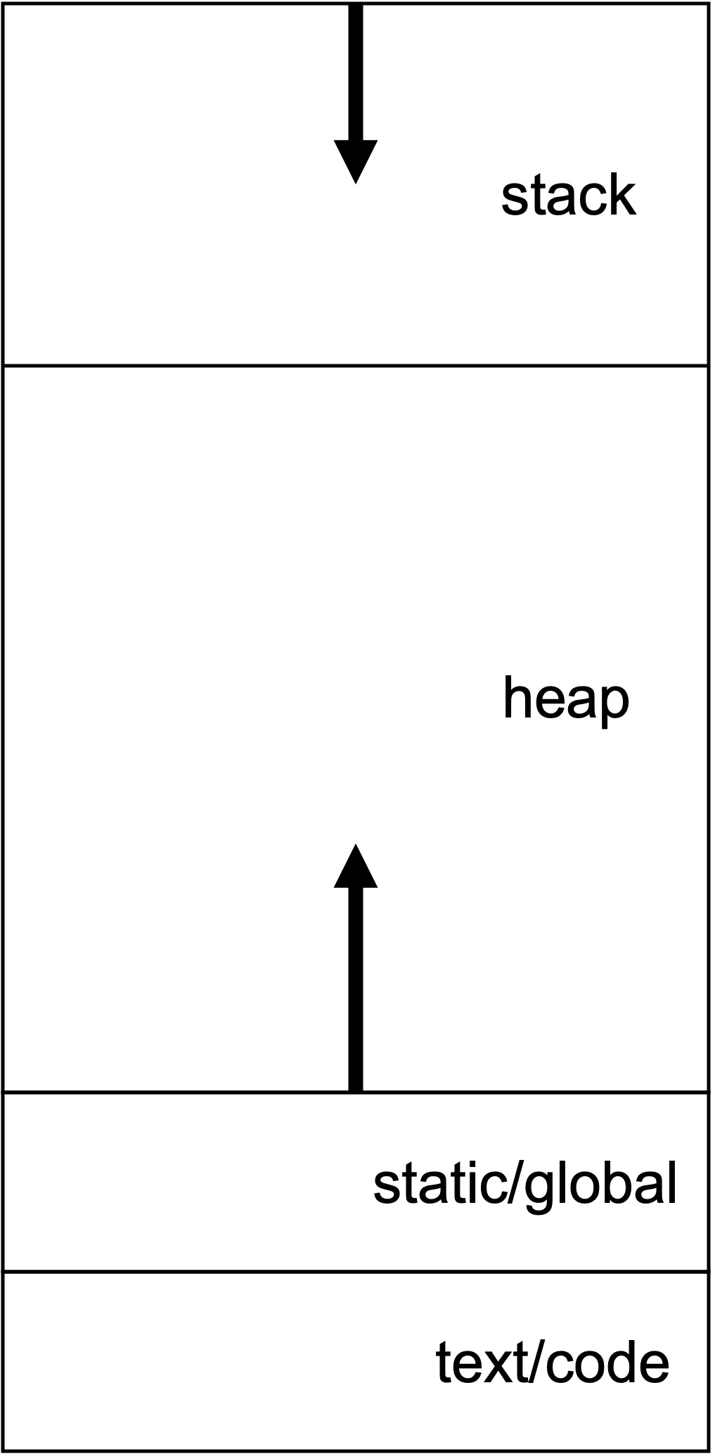 사실 이와 비슷한 그림은 아마 C언어를 처음 배울 때, 혹은 C++을 처음 배울 때 많이 보았을 것이다. 위쪽이 스택이고, 아래쪽이 힙이다. 스택은 위에서 아래로 쌓여가듯이 할당되고, 해제될 때는 자동으로 아래에서 위로 해제된다. 하나의 닫는 대괄호가 끝날 때 안쪽에 있던 스택 메모리들이 해제되는 순서 역시 이와 관련이 있다.