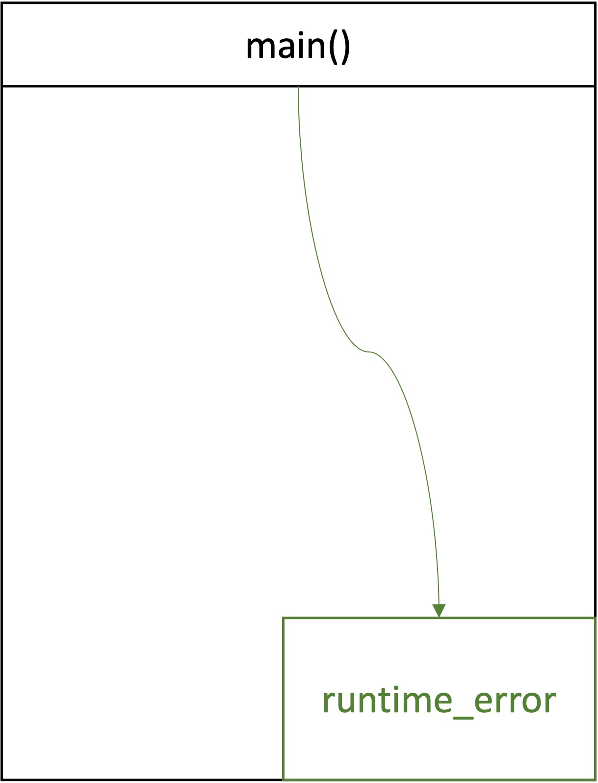 fn역시 익셉션을 처리할 수 없으므로, 스택 위에서 해제된다. main함수에서는 익셉션을 처리할 수 있다. 이제main함수가 직접std::runtime_error라는 exception을 처리할 것이다.
