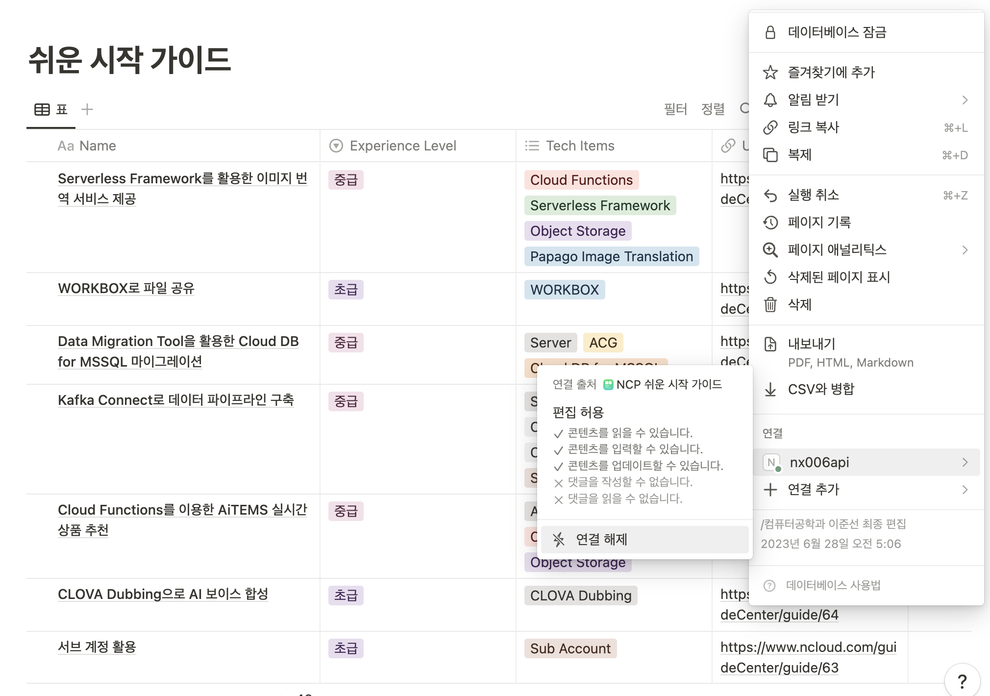 이전 글에서, Selenium과 BeautifulSoup을 사용해서 네이버 클라우드 플랫폼 가이드 정보를 추출해서, JSON 포맷으로 저장했다. 이번 글에서는, 저장된 정보를 Notion Database에 추가해 보겠다.