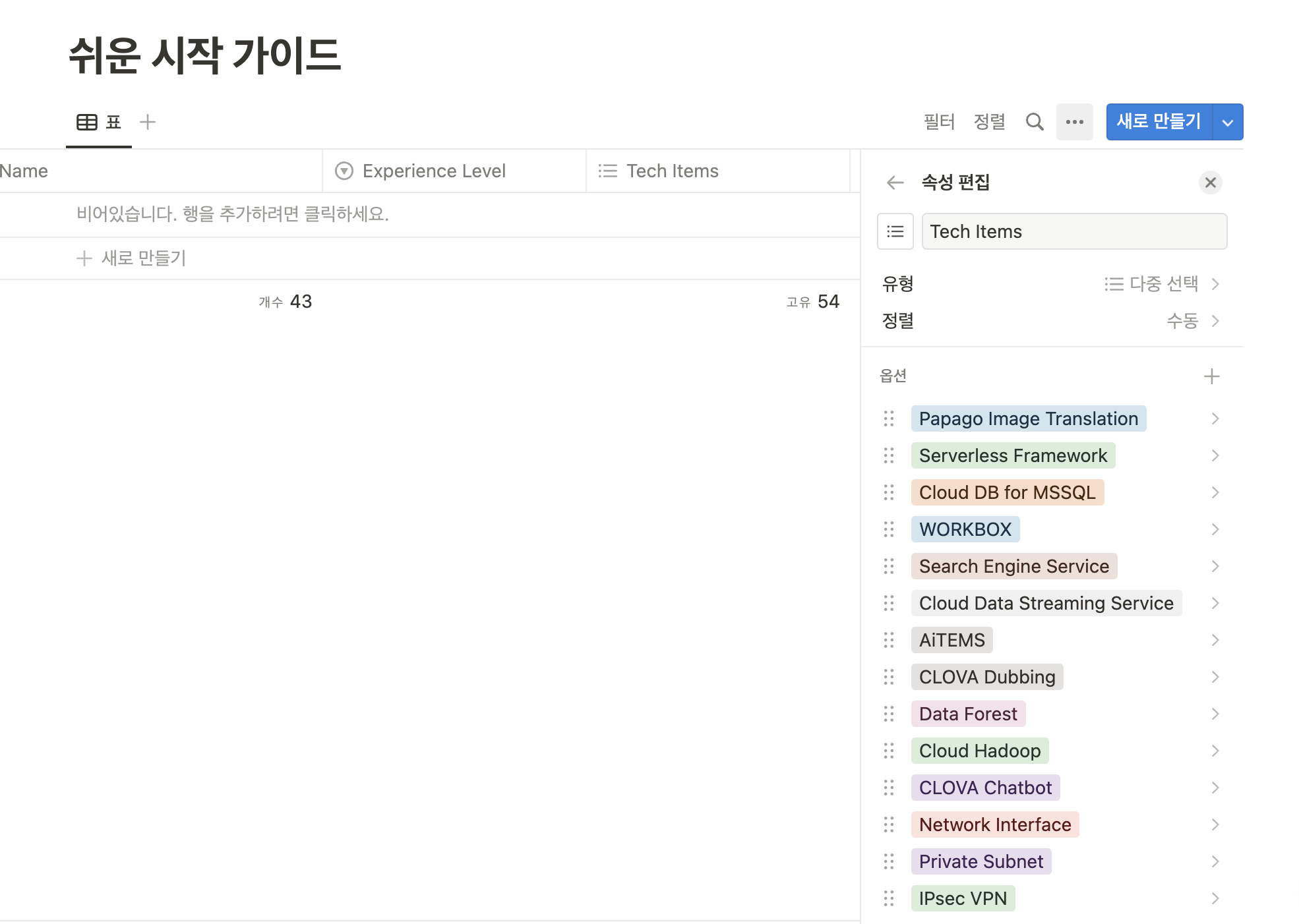 - Tech Items: 다중 선택(multi_select)