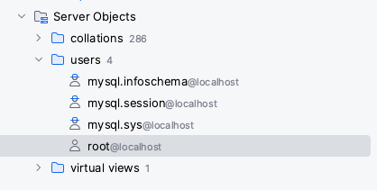 혹은 DataGrip에서는, Server Objects → users 디렉토리 안에 유저 목록을 확인할 수 있다.
