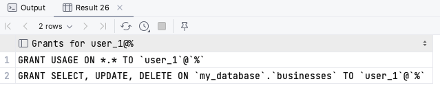 GRANT UPDATE, DELETE ON mydatabase.businesses