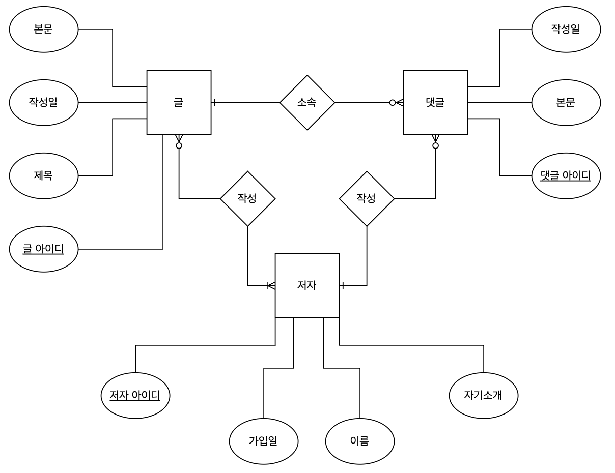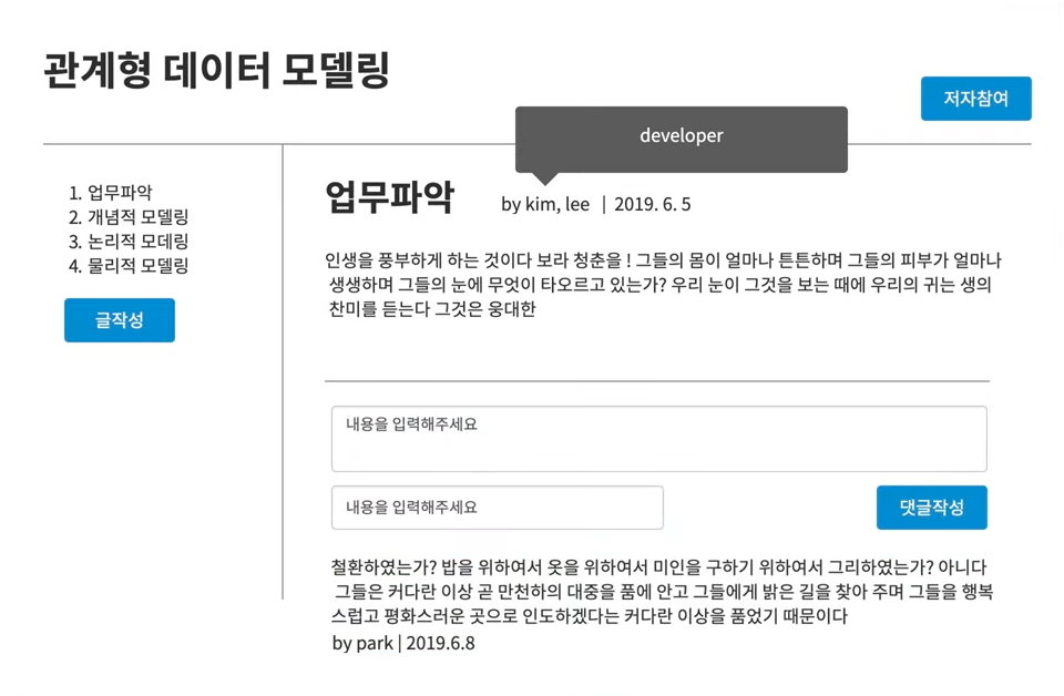 또한, 글은 반드시 하나 이상의 저자를 가져야 한다. 즉 저자 (1..N) - (0..N) 글의 관계이다.