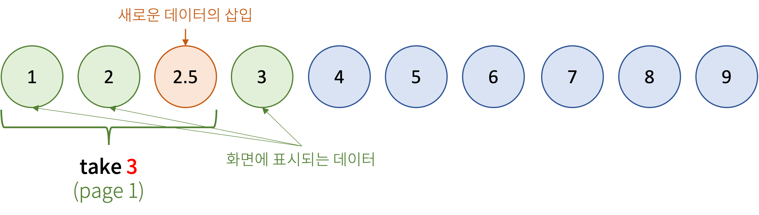 이때, 신규 데이터가 누락되는 것 자체는 어쩔 수 없다. 논리적 설계 측면에서도, 사용자가 관심있는 데이터는 id>3인 데이터지 id=2.5인 데이터는 현재의 관심사가 아니다. 이는 새로고침 등을 통해서 신규 데이터를 확보하는 게 자연스럽다.