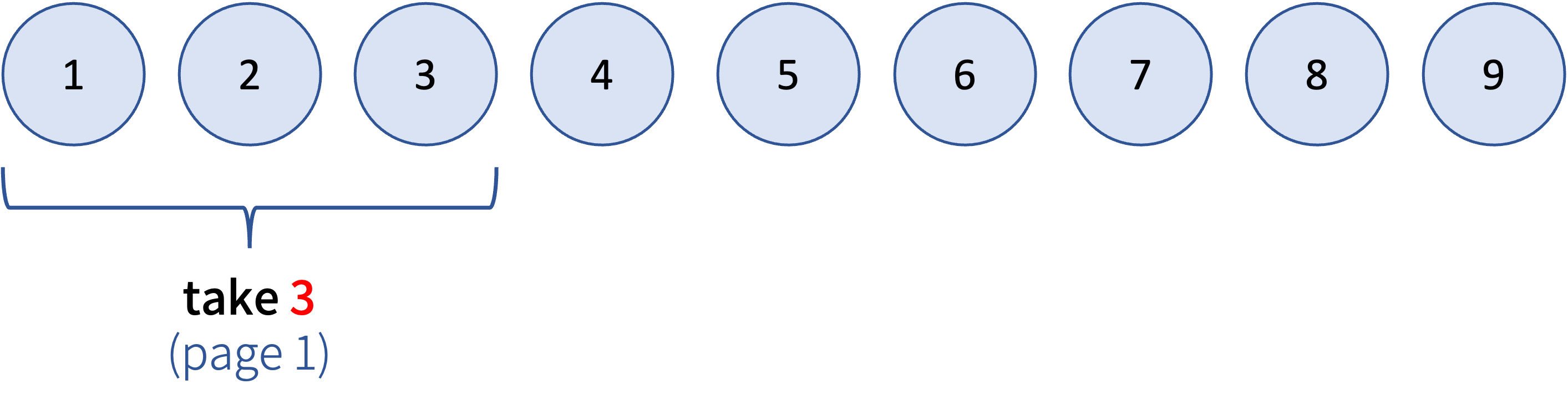 위 그림과 같은 과정을 통해서 페이지네이션이 진행된다. 예를 들어 한 페이지 당 3개의 아이템이 들어가고, 페이지 넘버가 3이라면, 요청된 오프셋은 총 6이 될 것이다(3 items per page * (3-1)).
