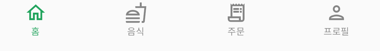 여기서 index는, BottomNavigationBar에서 나타낼 아이템 인덱스입니다. 위 그림에서 [’홈’, ‘음식’, ‘주문’, ‘프로필’] 아이템들의 인덱스를 말합니다.