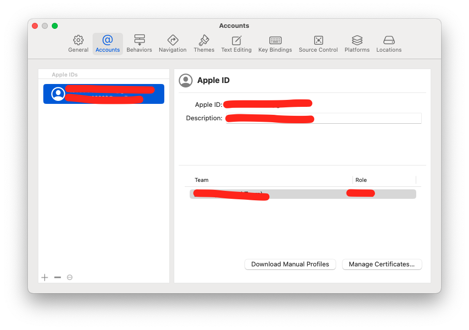 XCode를 켠 후 cmd + ,을 눌러서 Configuration으로 들어가자.