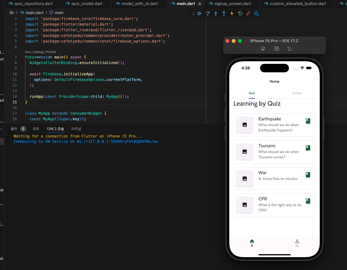 xcode를 통한 빌드는 성공하였다. 앱이 잘 실행되는 것을 확인.
