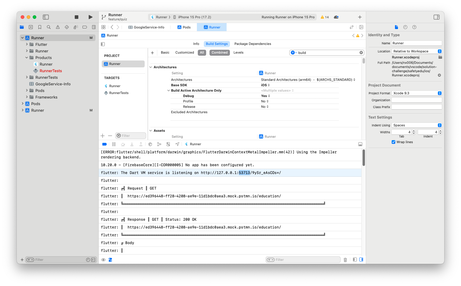Launching lib/main.dart on iPhone 15 Pro in debug mode...